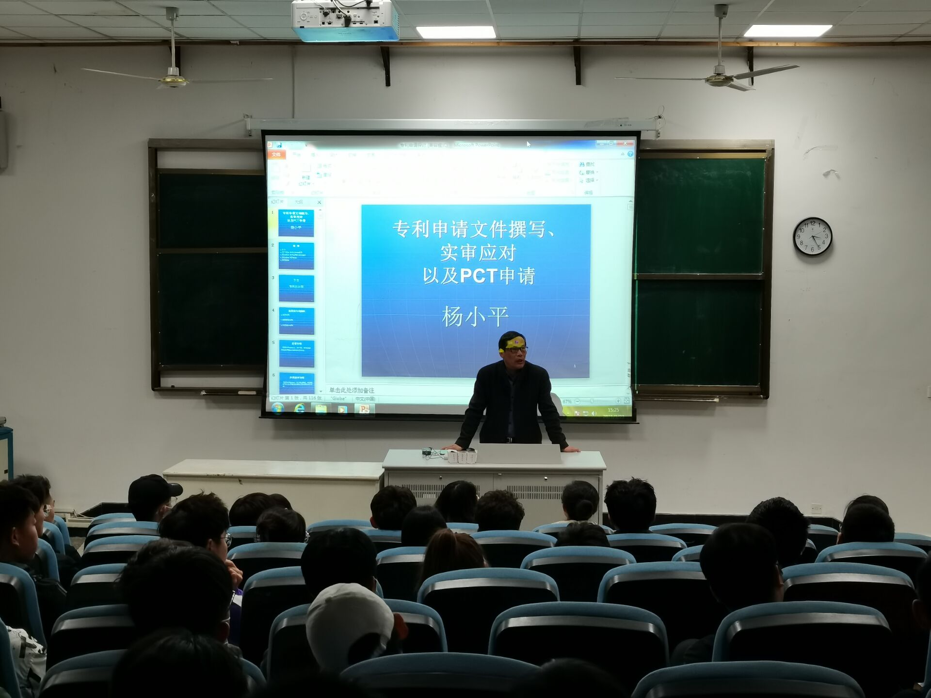 杨小平向同学们介绍了知识产权的重要性和国家对大学生创新能力培养的重视程度。“知识产权日益成为国家发展的战略资源和核心竞争力;国家和学校都重视大学生创新能力的培养,发挥科技创新对人才培养的重要作用”。其次,杨老师向同学们讲解了大学生专利申请的类型、申报方向和方法。“专利可以分为发明专利、实用新型专利、外观设计专利”,结合专业方向和知识基础,杨老师鼓励同学们从实用新型专利申报着手。随后,杨老师通过具体专利申报案例分析,向同学们讲解了创新专利想法如何激发,专利申报书撰写的要点、专利检索的方法以及专利申报的流程。