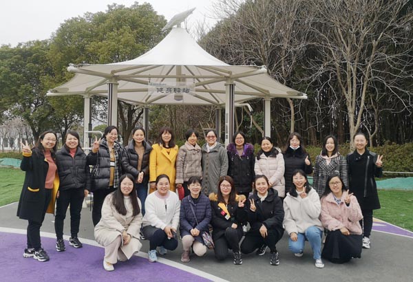 尚贤河全民健身步道位于经开区尚贤河湿地公园四期,总长4.5公里,既有水韵江南的温婉恬淡,又有现代都市的时尚活力。当天下午2点,管理学院全体女教工纷纷驱车来到湿地公园灯光球场集中活动,大家自由组合,分成“乘风”和 “破浪”两个队,展开激烈的接力对抗赛。随后是个人健身与徒步比赛,大家沿着紫色步道徜徉在碧水绿林之间,纷纷感慨无锡市越来越美。老师们闻花、拍照、唱歌、踏步,在欢歌笑语中大家的感情更浓了,心也更近了……