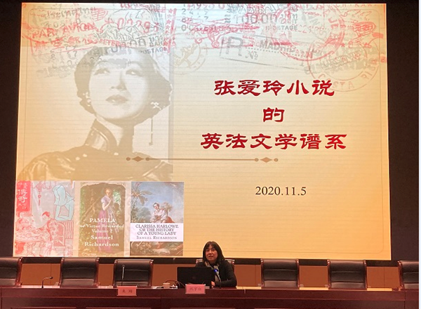 讲座中,祝宇红先从张爱玲的人生经历谈起,介绍了其创作活动;再将张爱玲的小说与英法小说相结合,以故事的形式深入浅出地谈了张爱玲小说对英法文学的借鉴;接着又将《倾城之恋》与理查逊“情感罗曼司”相结合谈了张爱玲小说与英法小说中的相似情节、相似人物形象。