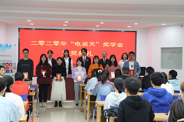 10月27日下午,物联网技术学院在图C401举行2020年度“电装天”奖学金颁奖仪式。电装天电子(无锡)有限公司总经理木下茂一、经理助理周峥嵘,物联网学院负责人及辅导员、44名获奖学生和部分观摩学生参加了颁奖仪式。
