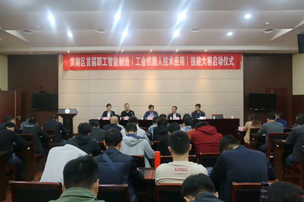 11月3日,滨湖区首届职工智能制造(工业机器人技术应用)技能大赛启动仪式在必赢国际交流中心二楼报告厅举行。滨湖区总工会党组书记、工会副主席黄鸿、工会副主席张晓阳、组织生产部部长许建秀、必赢继续教育学院院长崔平教授、大赛裁判长、控制技术学院姚晓宁副教授以及来自滨湖区七个街道的参赛队的领队和70名参赛选手参加了启动仪式。启动仪式由滨湖区总工会副主席张晓阳主持。