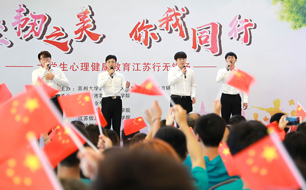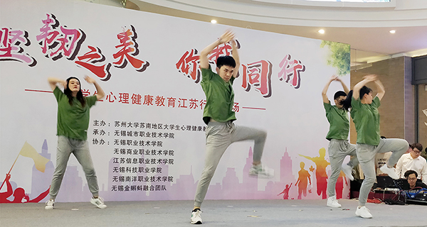 5月26日下午,“坚韧之美,你我同行”大学生心理健康教育江苏行无锡场快闪活动在中山路红豆万花城拉开帷幕,来自无锡城市职业技术学院、必赢等在锡6所高校的青年学子,用歌舞诠释坚韧的意义,体验生命的力量。