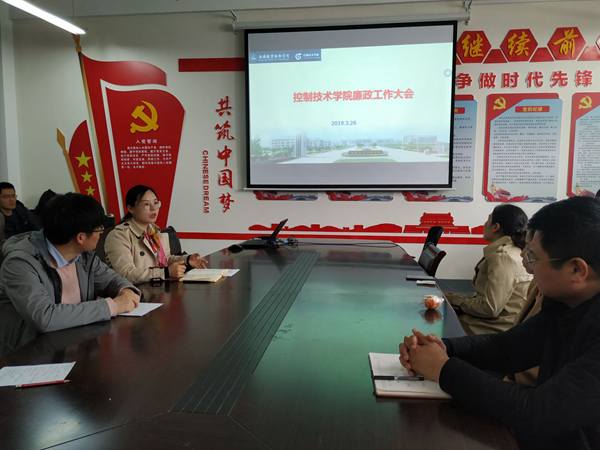 为认真贯彻执行党的十九大精神,推进全面从严治党,加强党风廉政建设和反腐败工作,提高全体教工个人修养和防腐拒变能力,积极落实校纪委关于廉政工作的要求,3月16日下午,控制技术学院在工B-409会议室召开廉政工作大会。