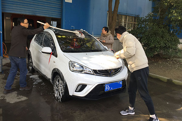 在党员志愿者们认真细致地擦洗下,一辆辆汽车重新焕发出了光彩,党员志愿者们热情的服务也得到了前来洗车的女教工们的一致称赞。