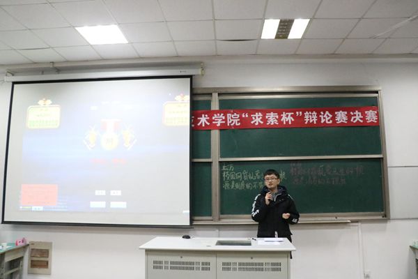 在主持人介绍比赛规则以及双方辩手后,决赛正式开始。在立论环节,双方一辩对本方观点进行了详细的阐述,观点鲜明深刻,体现了同学们良好的逻辑思维。在随后的攻辩环节中,选手们不失风度,侃侃而谈,良好的风范、出色的口才、敏捷的思维令场下观众为之折服,掌声不断。最后,双方四辩进行总结陈词,分别对本方的观点进行梳理总结,并指出对方的漏洞。辩论环节结束后,分团委庞军老师对本场辩论进行了点评,指出同学们要更巧妙的掌握辩论技巧和方法,提高辩论的针对性,并对本次的辩题发表了自己的见解。经过评委打分,反方获得了本次控制技术学院“求索杯”辩论赛决赛的胜利。