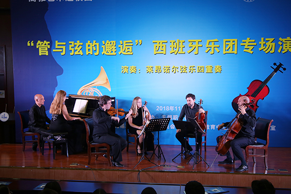 演出开始前,主持人为观众依次介绍了西班牙管弦乐团成员。伴随着观众们的热烈掌声,乐团献上了《莫扎特降E大调圆号五重奏Kv407》、《贝多芬降E大调六重奏Opus81b》、《勃拉姆斯F小调钢琴五重奏Opus34》三场曲目,带给观众一场余音绕梁的音乐盛宴。