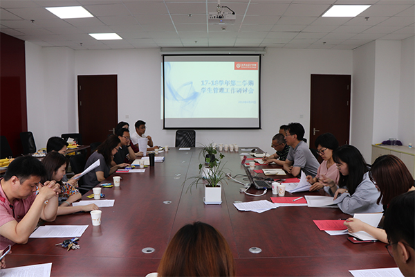 20日下午3:30,艺术与设计学院在综合楼215会议室举办17-18学年第二学期学生管理工作研讨会,学生处处长强伟纲,艺术与设计学院党总支书记罗嘉军、辅导员、班主任、学生院长助理以及学生代表参加了研讨会。