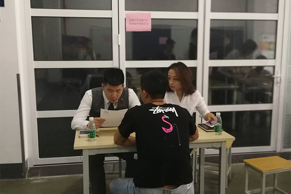 见面会当天,18家用人单位带来了多达100余个汽车售前售后相关实习岗位,其中不乏奔驰、宝马等多家4S店。参会参加供需见面会的45位汽修专业学生积极与用人单位接触,找寻适合自己的实习岗位。他们或与用人单位招聘人员仔细交流,或驻足用人单位招聘海报前仔细阅读公司简介和岗位需求情况,现场场面热闹非凡。为指导学生做出正确的实习选择,学院辅导员陪同学生,积极向学生推荐合适的实习单位,答复学生的困惑,鼓励学生勇敢挑战自己。