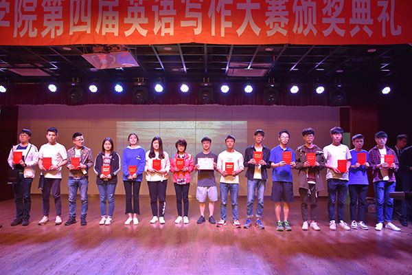 本次大赛首席评卷老师陈洪江老师对英语写作大赛做了简要点评并致颁奖辞,要求同学们努力学习文化知识,增强英语写作能力,为今后的发展打下坚实的基础,祝愿同学们有一个更美好的未来。接着,20多名获奖的选手上台,由出席本次颁奖典礼的老师进行颁奖、合影留念。大赛优秀选手陆泓铭上台发表获奖感言。最后,典礼在校艺术团和留学生的演唱声中结束。
