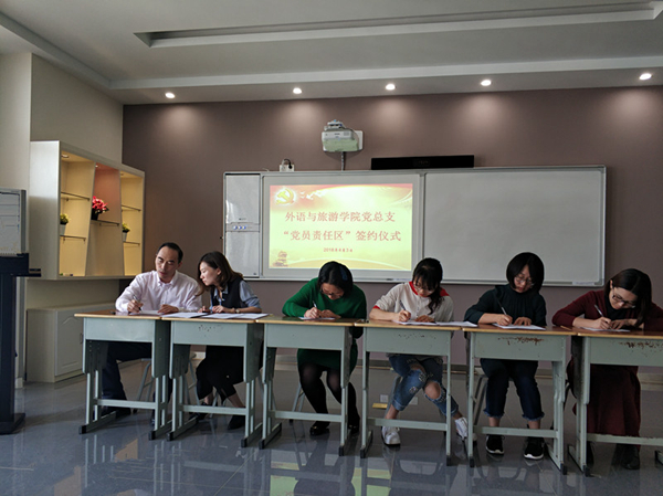 4月3日下午,外语与旅游院党总支召开党员大会,开展“党员责任区”签约活动。