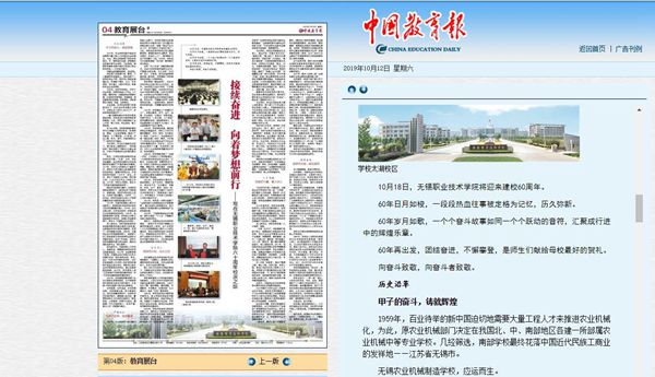 【中国教育报】接续奋进 向着梦想前行——写在无锡职业技术学院六十周年校庆之际