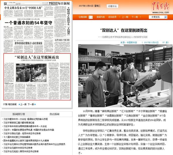 【中国青年报】“双创达人”在这里脱颖而出——无锡职业技术学院培养创新创业人才的探索与实践