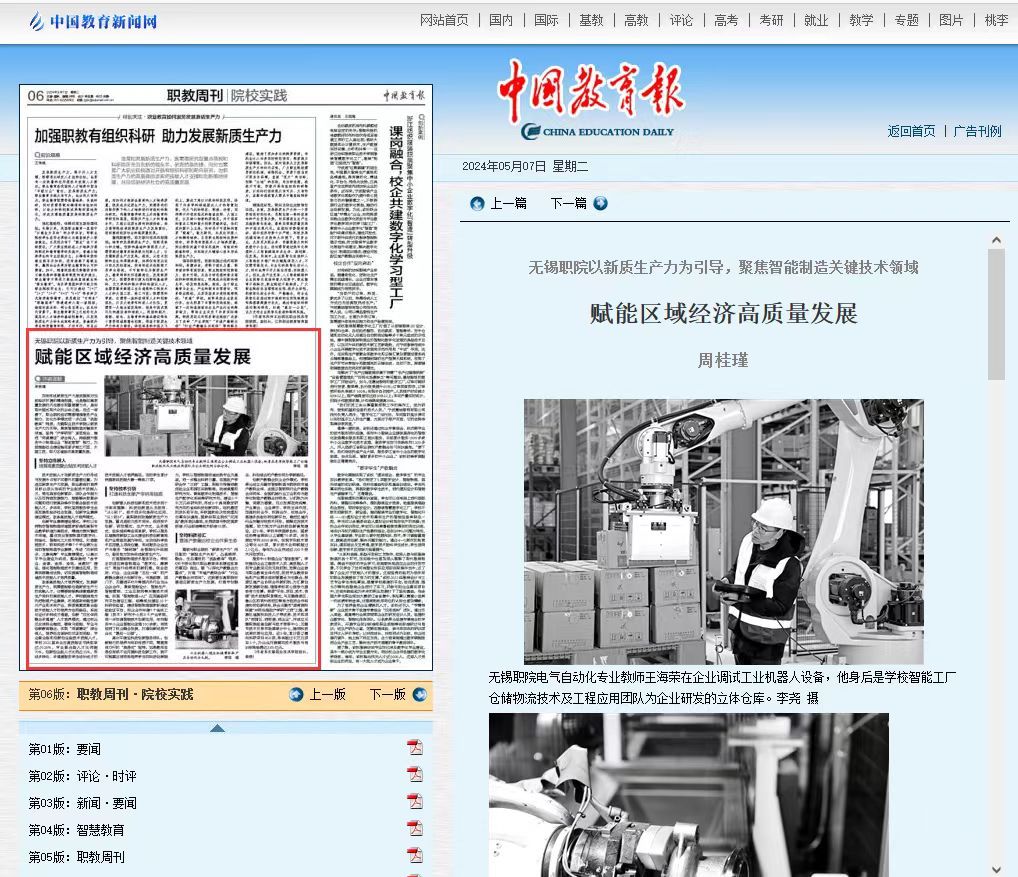 【中国教育报】无锡职院以新质生产力为引导,聚焦智能制造关键技术领域 赋能区域经济高质量发展