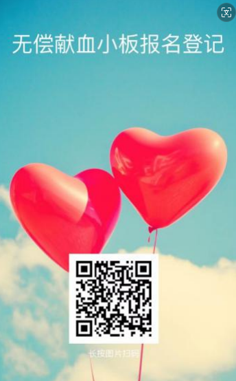 即日起至本学期结束,请有意报名参加此次无偿献血的同学微信扫描以下二维码报名,届时会有相关工作人员与你联系,确定捐献血小板相关注意事项,并告知具体安排。