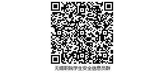 3、保卫处建立安全信息员微信群,群名称:无锡职院学生安全信息员群。安全信息员可长按识别或微信扫描下方二维码,以实名按“班级-姓名”格式进入此群。