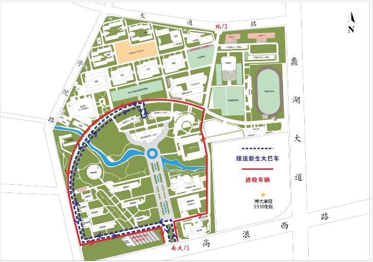 新生报到校内交通通行示意图
