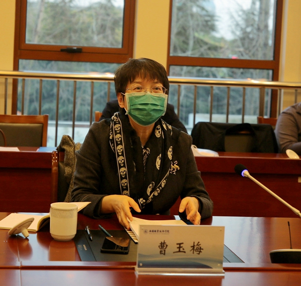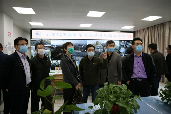 曹玉梅在讲话时充分肯定了学校在疫情防控方面所做的努力和取得的成效。她指出,作为中国特色高水平高职学校,无锡职业技术学院高度重视疫情防控工作,学校上下一心、应对得当,这也和无锡市教育局的关心和指导密不可分。曹玉梅强调,从现在起,既要持续开展好日常防护、安全工作和线上教学,又要为安全、平稳、有序地开学做好充分准备。她强调,如何安全有序地做好开学准备工作,确保开学后的平安稳定,是当前工作的重中之重。首先,学校已经出台新型冠状病毒肺炎防控期间师生返校工作方案,要在可操作性上作进一步做足功夫;其次,要进一步明确行政管理人员的职责,使他们熟悉防疫工作中各个环节的应对措施,提高解决突发事件的能力,同时,高度重视学生从离开家门到走进学校再到学习生活的每一个环节;第三,要充分关注开学后学生就餐、口罩等防控物资储备、线上线下教学衔接等重点领域。她还希望无锡市教育一如既往地支持学校各方面的工作,顺利度过新冠肺炎疫情这道关卡。