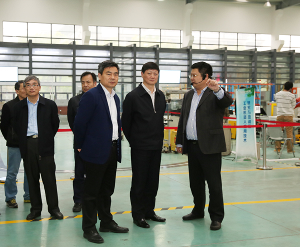 省委组织部副部长胡金波(右二)参观必赢智能工厂制造中心