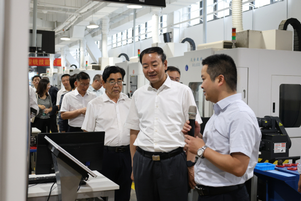 张世珍一行走访参观了智能制造工程中心、智能制造协同创新中心、机械制造工程训练中心、汽车与交通工程学院等场所,详细了解学校在专业设置、产教融合、校企合作、实验室建设等方面的情况。