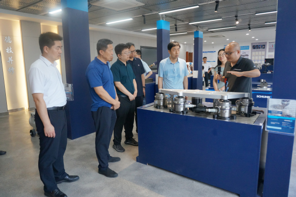 陕西省发改委调研组走访参观了智能制造工程中心、“智造”双创实践教育中心、智能制造应用技术研发基地等场所。杨雪琴代表学校对陕西省发改委调研组的到来表示热烈欢迎,并介绍了学校历史沿革、办学概况、专业(群)建设、产学研用融合、校企合作等方面的内容。